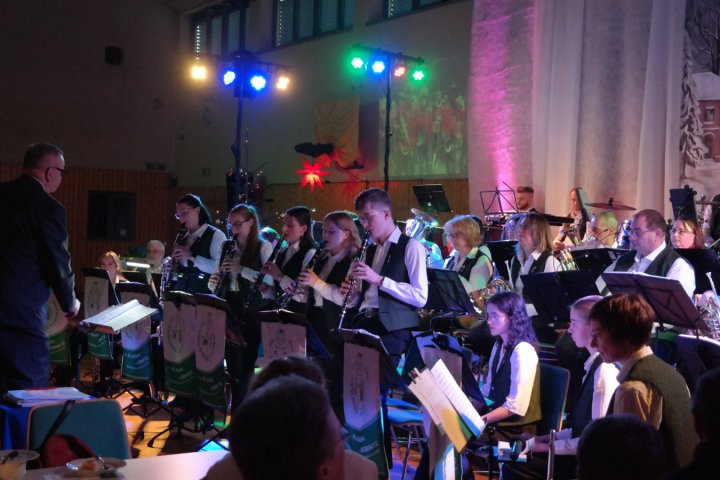 Mit Freude beobachteten wir, wie sich die Stuhlreihen der Stadthalle rasant schnell füllten. Pünktlich starteten wir mit dem Seyffertitz Marsch und schmetterten das erste Solo in die zur Konzerthalle umfunktionierte Mehrzweckhalle am Neustädter Weg.